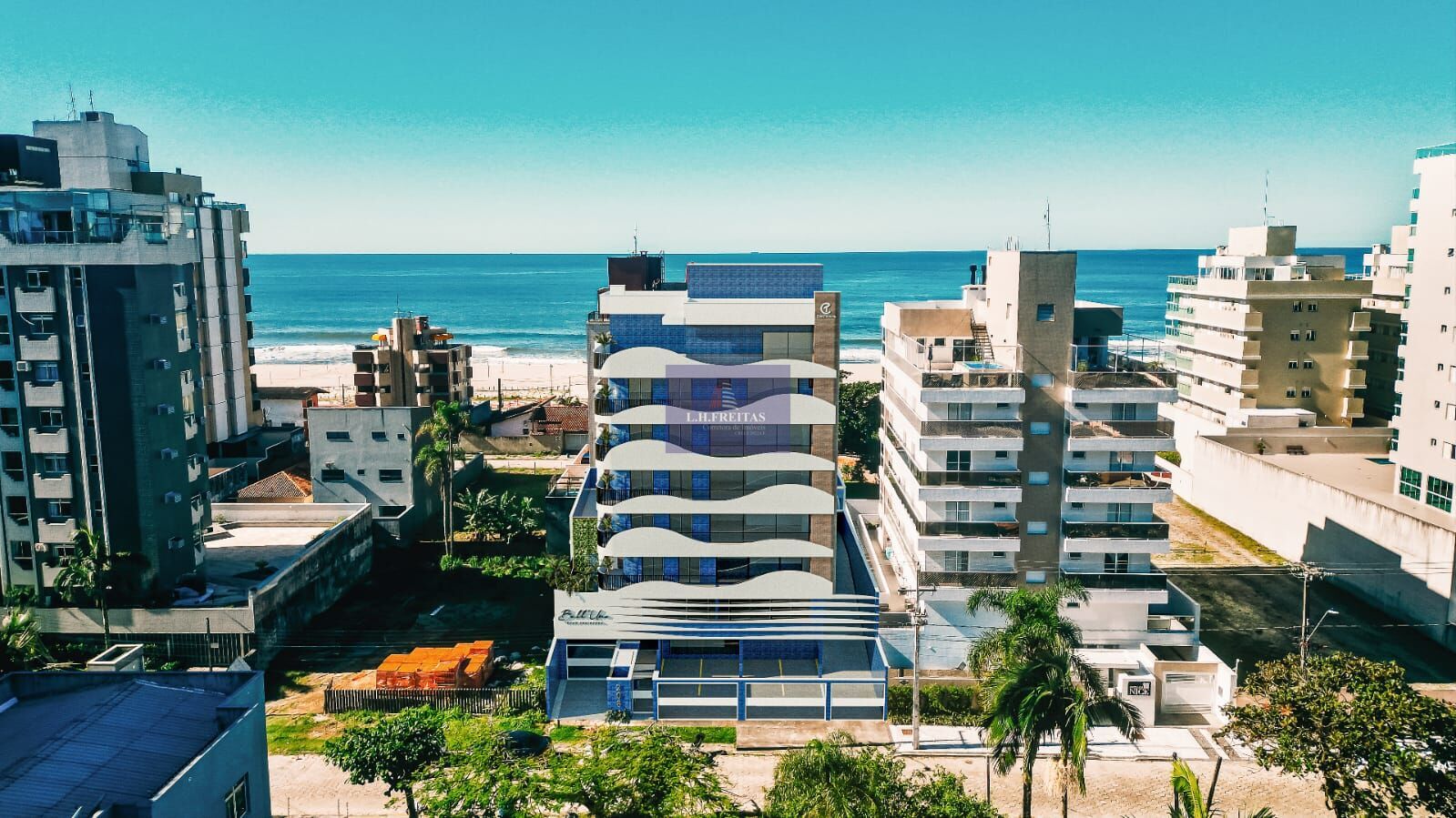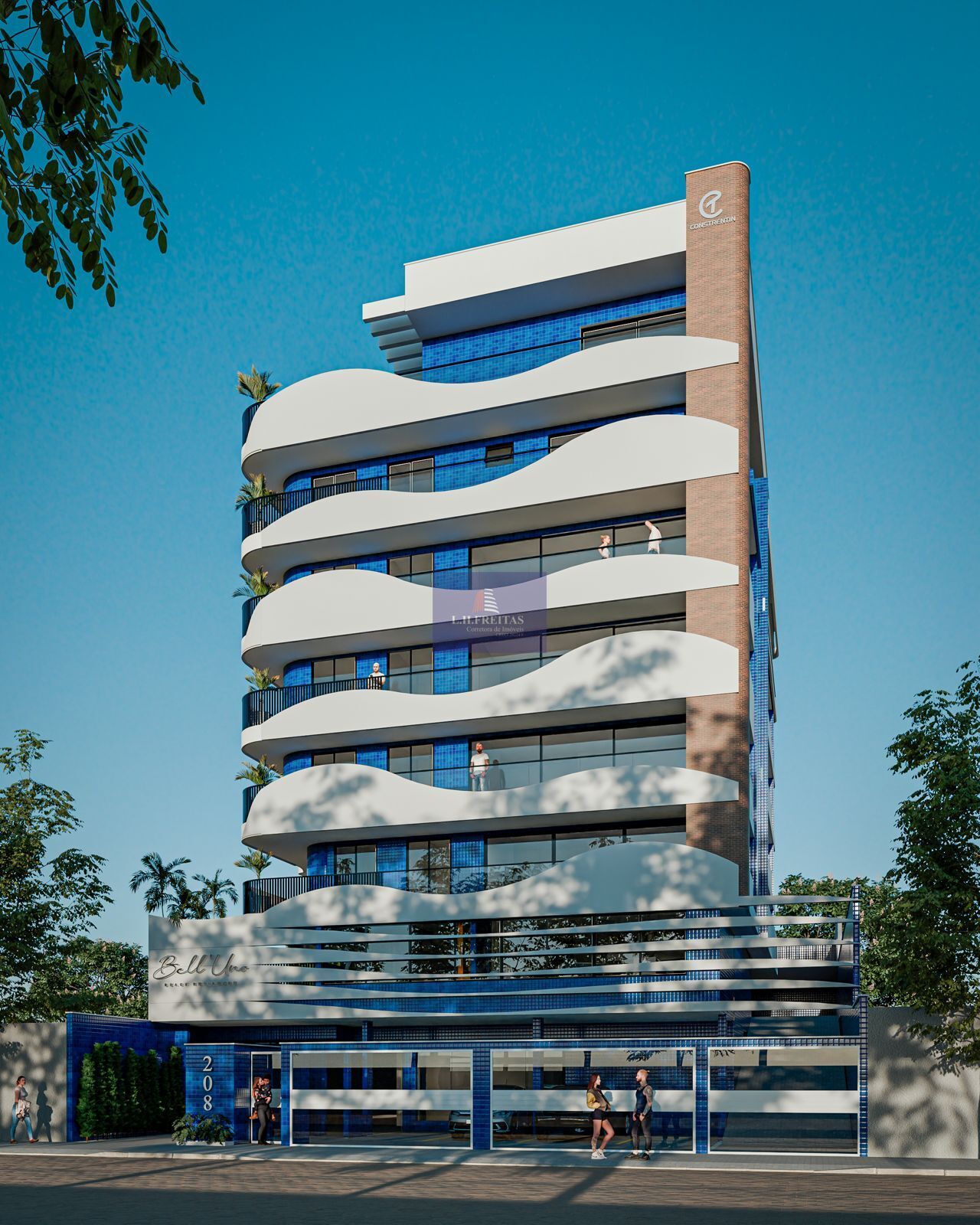 Fachada orgânica com linhas arredondadas uma combinação de elementos estruturais e decorativo que ressaltam a beleza única do Bell’ Uno Beach Residence.